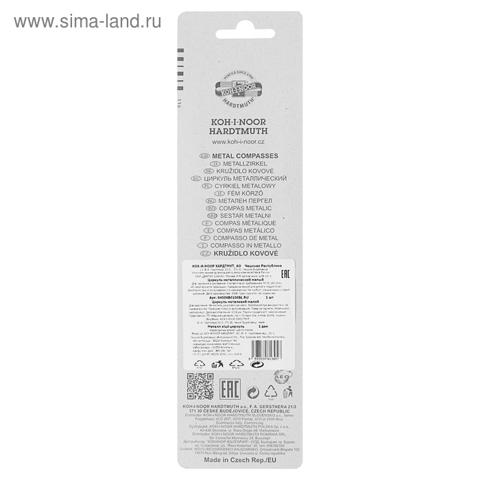 Циркуль металлический Koh-I-Noor 4506, 122 мм, красный, блистер, европодвес МИКС