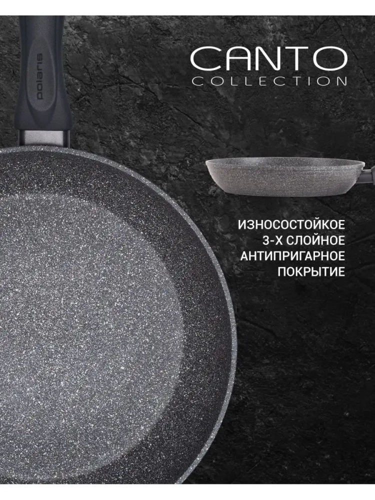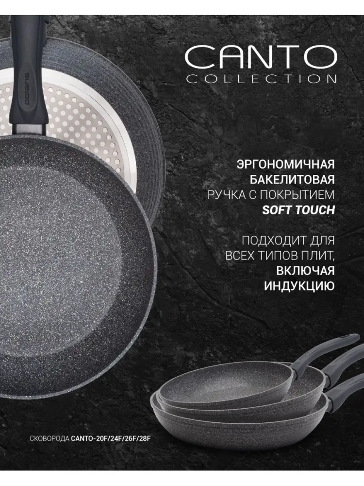 Сковорода без крышки коллекция CANTO- разрабатывается совместно с европейскими инженерами и соответствует европейским сертификатам качества. Мы стремимся поставлять продукцию с высокими эксплуатационными характеристиками по доступной цене. Наша цель состоит в том, чтобы создавать на рынке продукты, которые значительно улучшают жизнь и здоровье. Гарантия - 2 года. Изготовлена из высококачественного кованного алюминия. Сковородки из этого материала не такие тяжёлые, как чугунные и литые. Но их эксплуатационные характеристики даже лучше. Посуда равномернее прогревается и дольше сохраняет тепло, чем штампованная. ПОДХОДИТ ДЛЯ ВСЕХ ПЛИТ, ВКЛЮЧАЯ ИНДУКЦИОННЫЕ! Инновационное 3-х слойное высокопрочное антипригарное покрытие от компании DYFLON, устойчиво к царапинам и износу, надолго сохранит привлекательный внешний вид. Микросотовая структура поверхности позволяет равномерно распределить масло. При этом продукты не пригорают и сохраняют натуральный вкус. С Polaris можно воплотить в жизнь все кулинарные рецепты, так как на ней можно потушить вкуснейшие овощи, обжарить нежное мясо, отварить сложный гарнир, сделать густой пряный соус и даже приготовить изысканный десерт. Сковородка полностью безопасна для здоровья и не содержит вредных веществ, а также не требует особенного ухода, легко моется как вручную, так и в посудомоечной машине. Эргономичная бакелитовая ручка с покрытием SOFT TOUCH не скользит и не нагревается. Такой объем сковородки делает ее удобной для приготовления блюд с расчетом порций как для большой, так и для маленькой семьи.