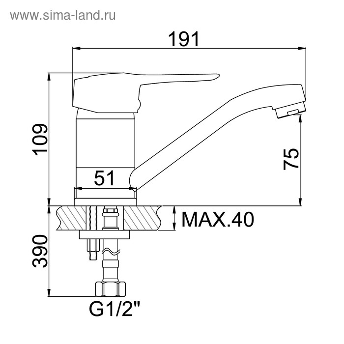 Смеситель для кухни ZEIN Z85, однорычажный, картридж керамика 40 мм, нержавеющая сталь, хром