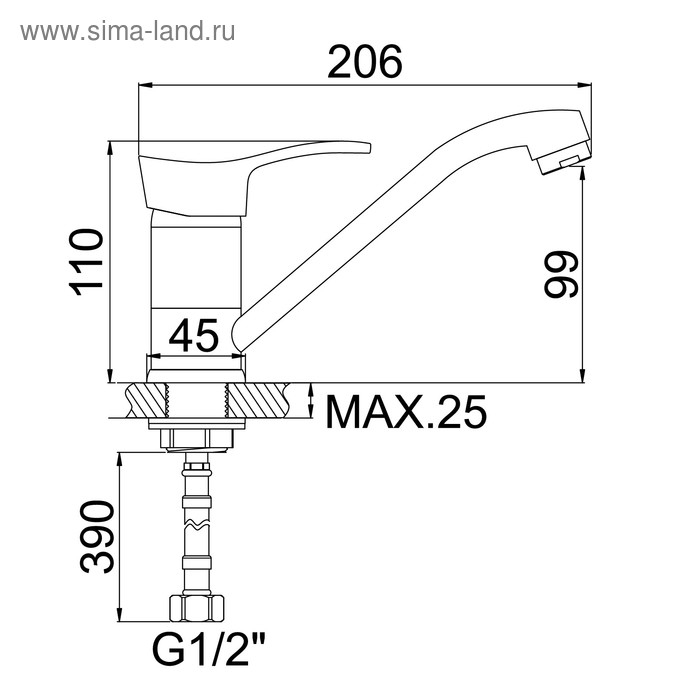 Cмеситель для кухни Accoona A4261, однорычажный, с гайкой, силумин, хром