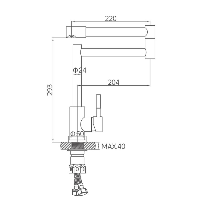 Cмеситель для кухни Accoona A44090, однорычажный, складной излив, нержавеющая сталь, хром