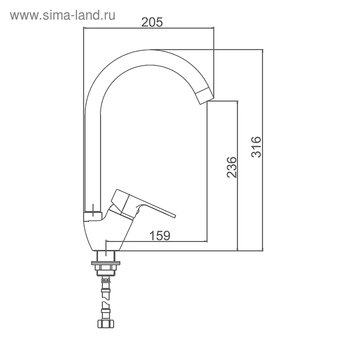 Cмеситель для кухни Accoona A4467, однорычажный, с гайкой, силумин, хром