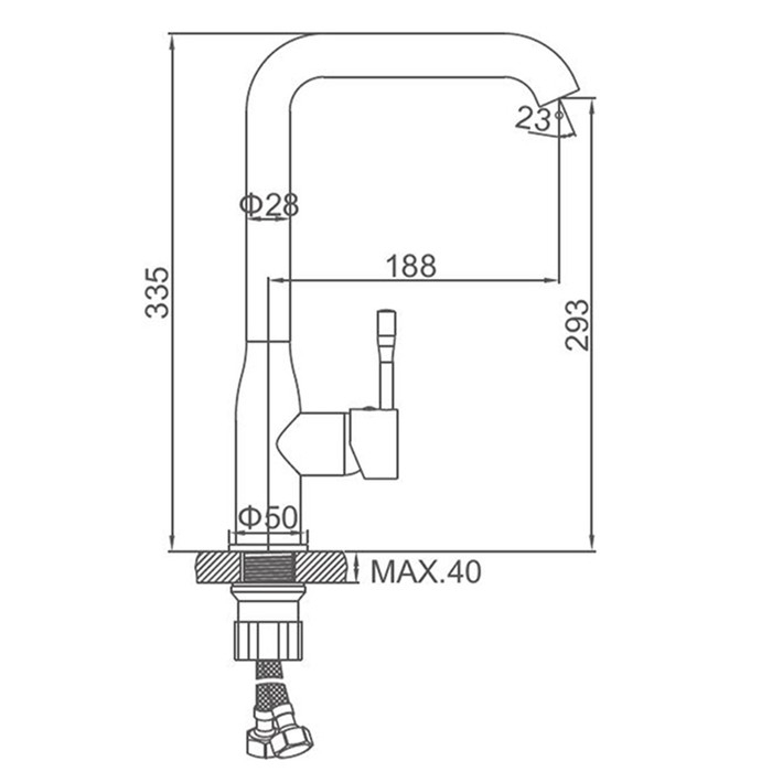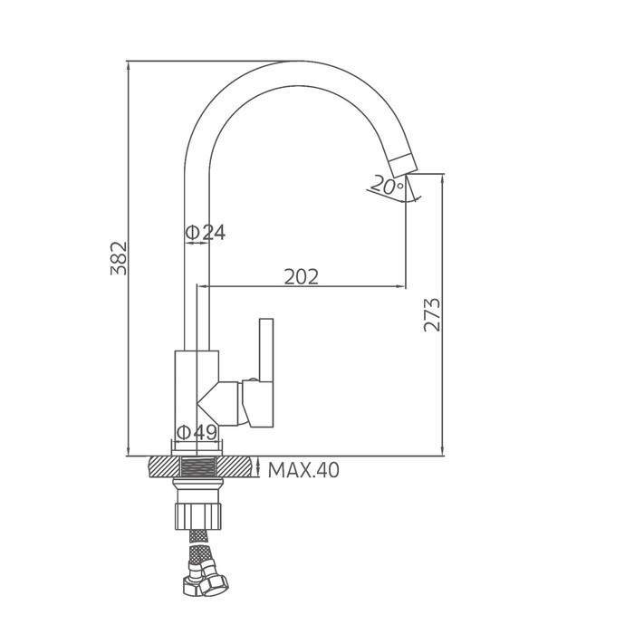 Cмеситель для кухни Accoona A4490F-3, однорычажный, высокий излив, латунь, черный