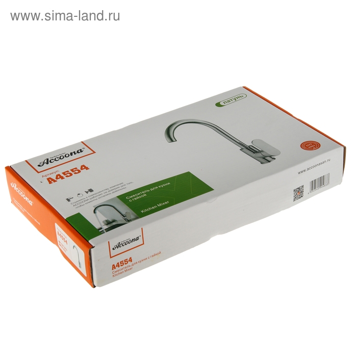 Cмеситель для кухни Accoona A4554, однорычажный, высокий, с гайкой, латунь, хром