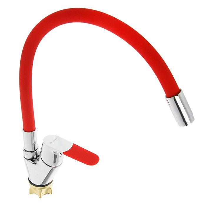 Cмеситель для кухни Accoona A4819N, однорычажный, силиконовый излив, латунь, красный/хром