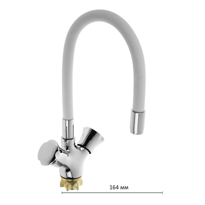 Cмеситель для кухни Accoona A4883G, двухвентильный, силиконовый излив, силумин, белый/хром