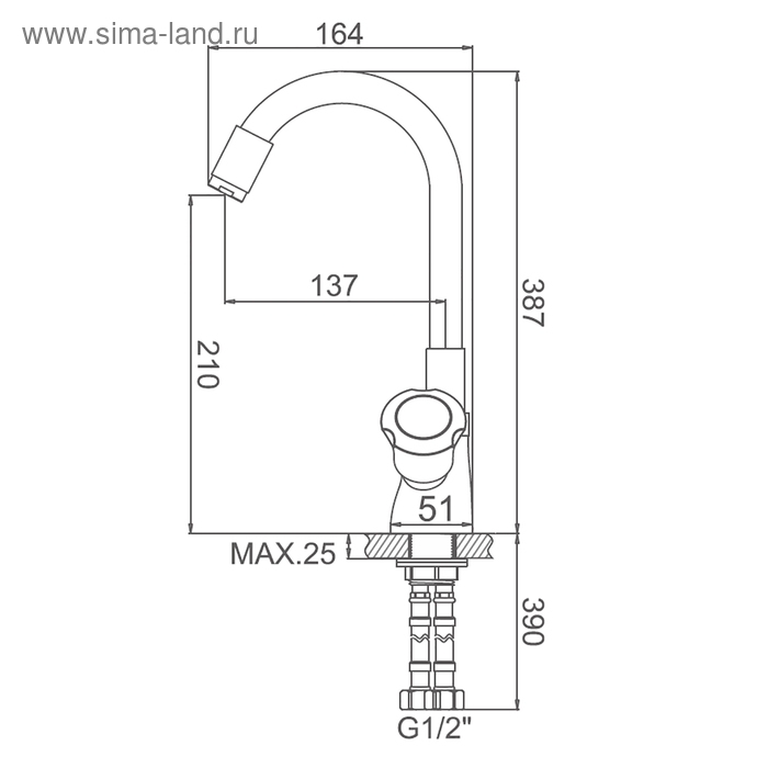 Смеситель для кухни ZEIN Z50151, однорычаж., картридж 35 мм, излив 15 см, без подводки, хром