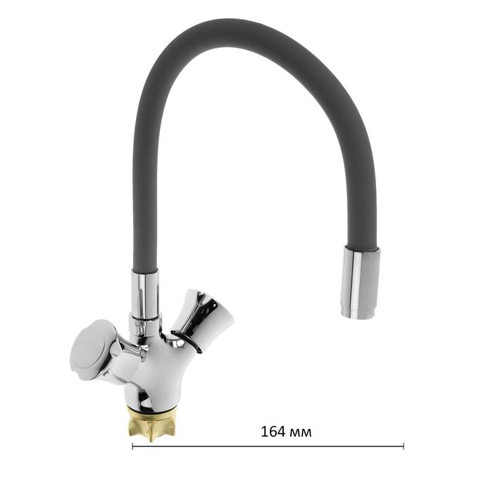 Cмеситель для кухни Accoona A4883T, двухвентильный, силиконовый излив, силумин, серый/хром