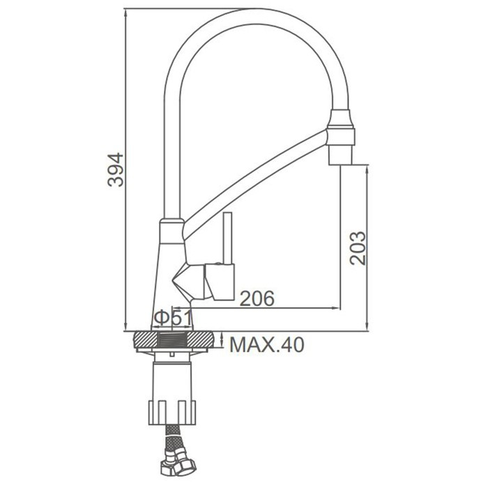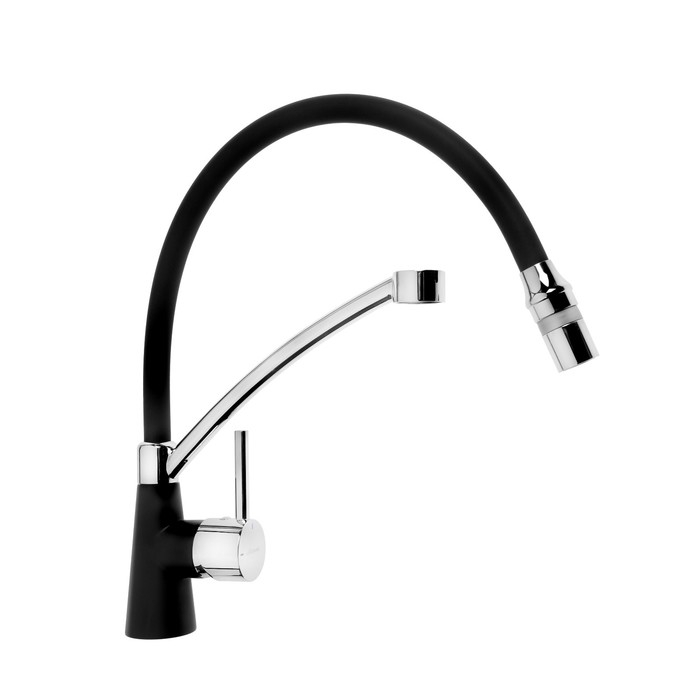 Cмеситель для кухни Accoona A4890FF-2, однорычажный, силиконовый излив, латунь, черный