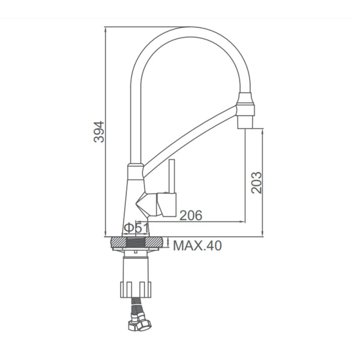Cмеситель для кухни Accoona A4890TF-2, однорычажный, силиконовый излив, черный, графит