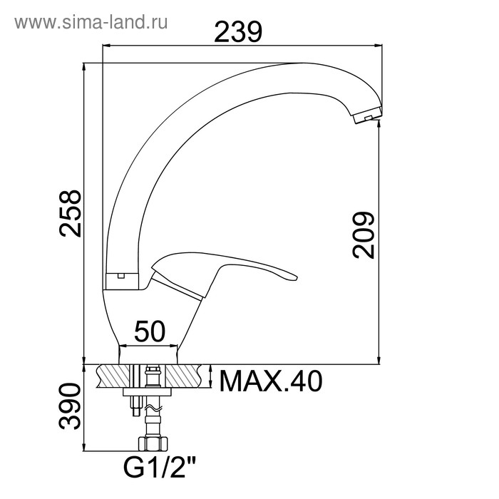 Cмеситель для кухни Accoona A5043, однорычажный, силумин, хром