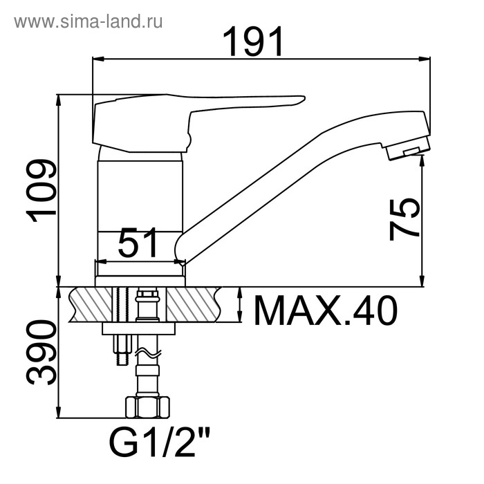 Cмеситель для кухни Accoona A5230, однорычажный, латунь, хром
