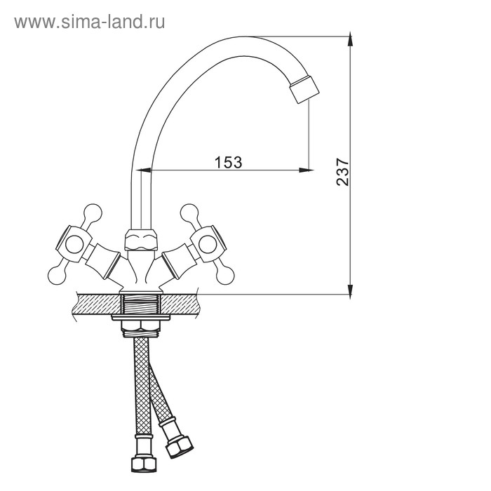 Cмеситель для кухни Accoona A5680, двухвентильный, силумин, хром