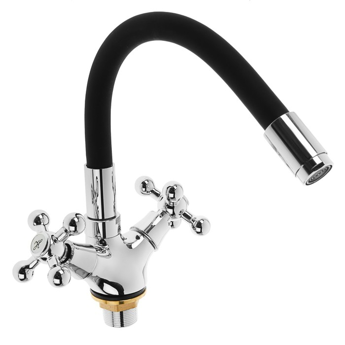 Cмеситель для кухни Accoona A9871F, двухвентильный, силиконовый излив, силумин, черный/хром