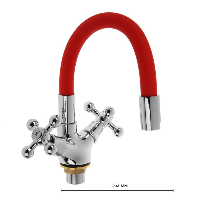 Cмеситель для кухни Accoona A9871N, двухвентильный, силиконовый излив, силумин, красный/хром