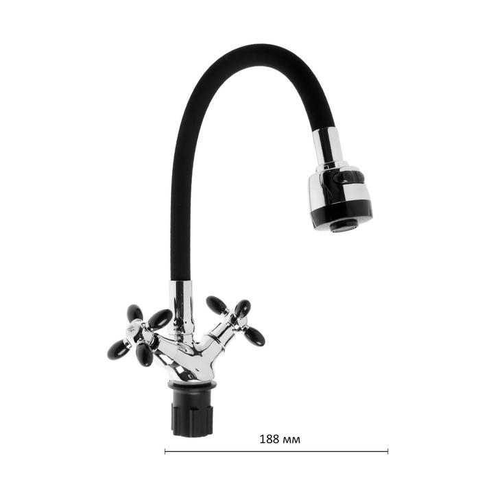 Cмеситель для кухни "Эверест" B57-071F, двухвентильный, гибкий излив, на гайке, хром/черный