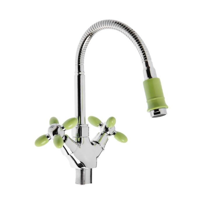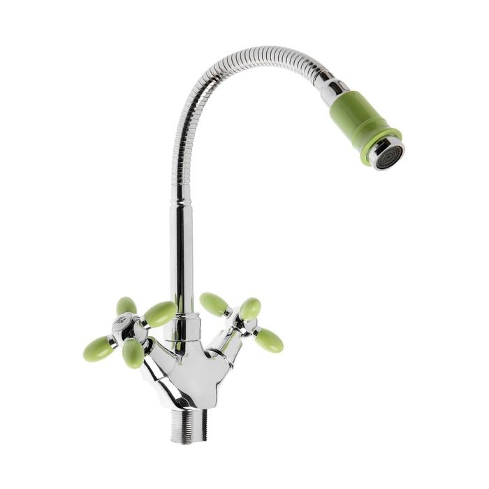 Cмеситель для кухни "Эверест" B58-071E, двухвентильный, высокий излив, на гайке,хром/зеленый
