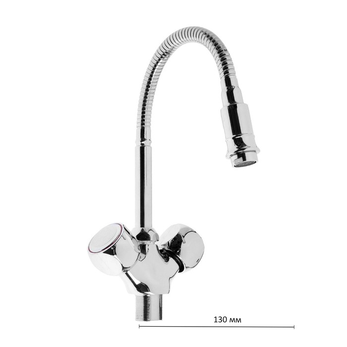 Cмеситель для кухни "Эверест" B58-336, двухвентильный, гибкий излив, на гайке, хром