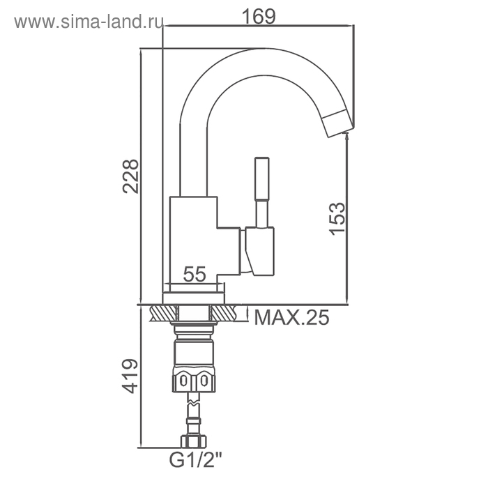 Cмеситель для раковины Accoona A9690-3, однорычажный, с гайкой, нержавеющая сталь