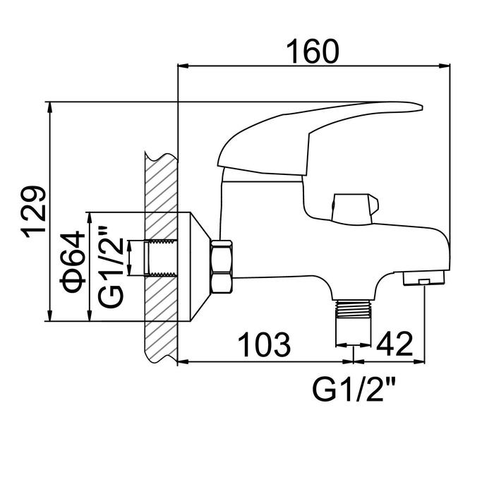 Cмеситель для ванны Accoona A6040, однорычажный, силумин, хром