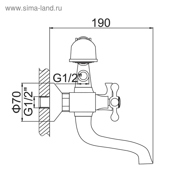 Cмеситель для ванны Accoona A6070, двухвентильный, латунь, хром