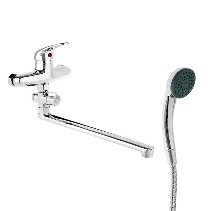 Cмеситель для ванны Accoona A7060, однорычажный, излив 300 мм, с душевым набором, хром
