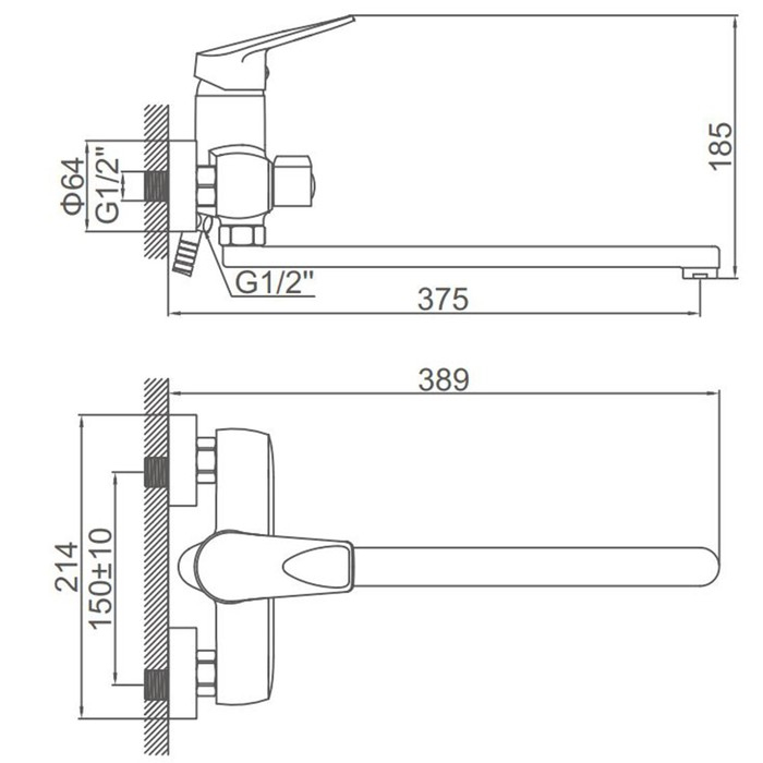 Cмеситель для ванны Accoona A7110, однорычажный, 2-режимный картридж, латунь, хром