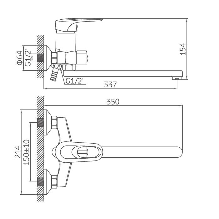 Cмеситель для ванны Accoona A7130A, однорычажный, с душевым набором, латунь, сатин