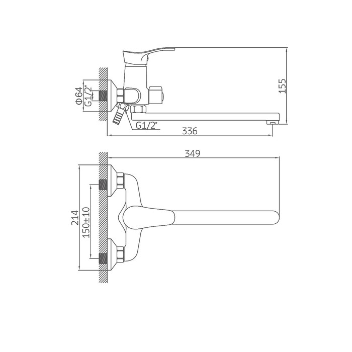 Cмеситель для ванны Accoona A7161, однорычажный, силумин, хром