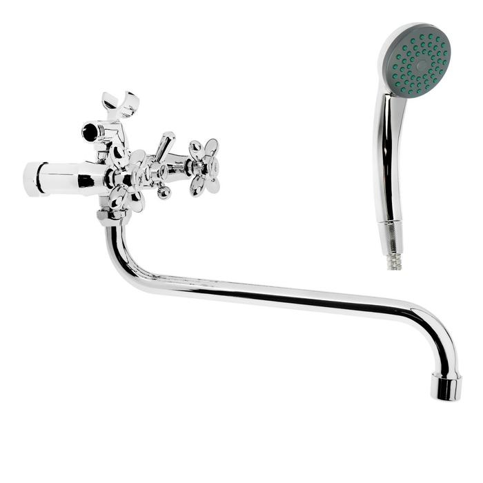 Смеситель для ванны ZEIN ZC2050, излив 30 см, картридж 35 мм, с душевым набором, хром