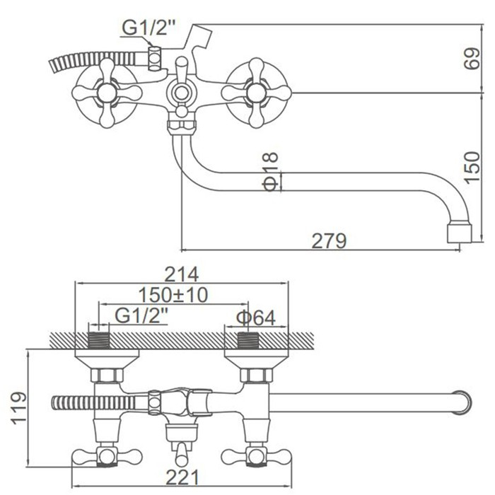 Cмеситель для ванны Accoona A7380, двухвентильный, латунь, хром