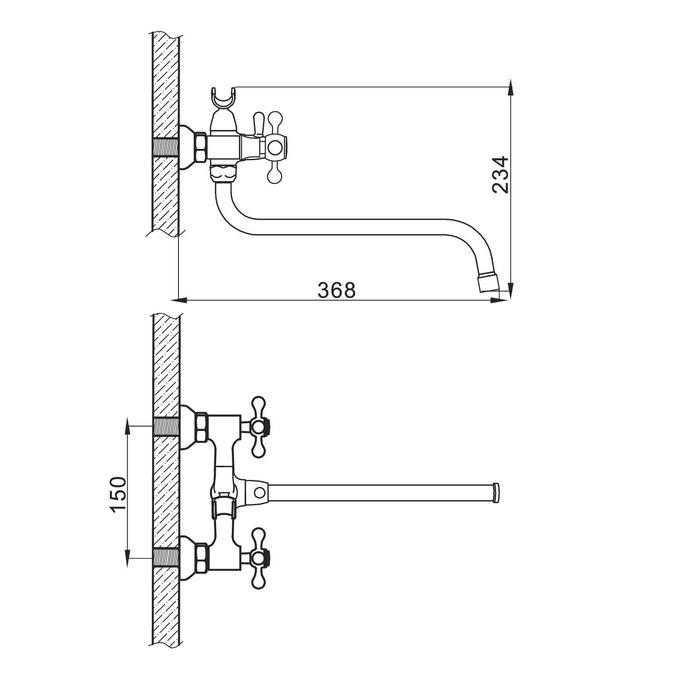 Cмеситель для ванны Accoona A7576, двухвентильный, латунь, хром
