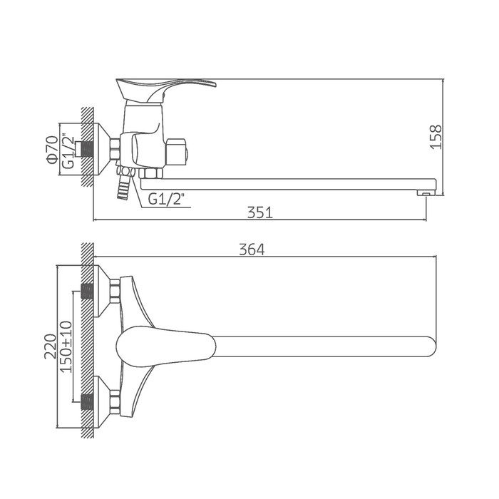 Cмеситель для ванны Accoona A87105, однорычажный, излив 300 мм, силумин, хром