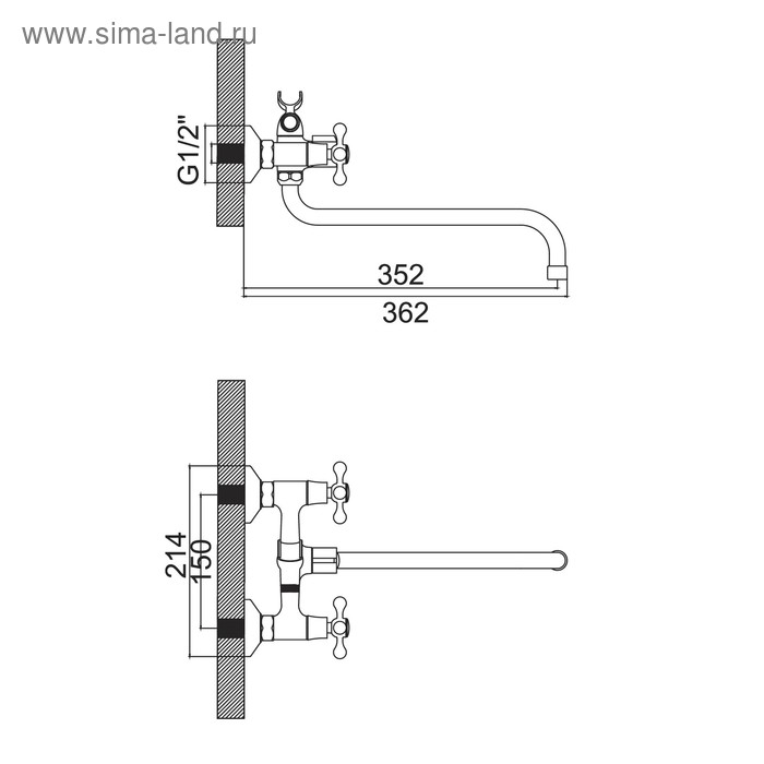 Cмеситель для ванны Accoona A87179, двухвентильный, хром