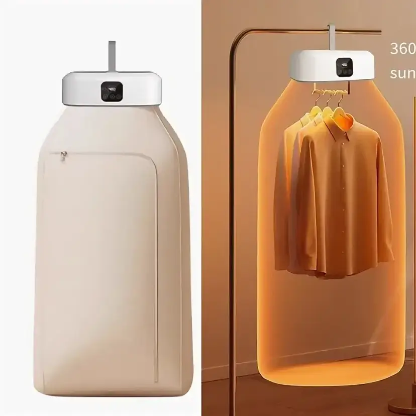 Удобная портативная электросушилка с чехлом станет вашей незаменимой помощницей. Благодаря этому современному гаджету вы сократите время на сушку одежды.Особенно она незаменима в регионах с холодным и влажным климатом.