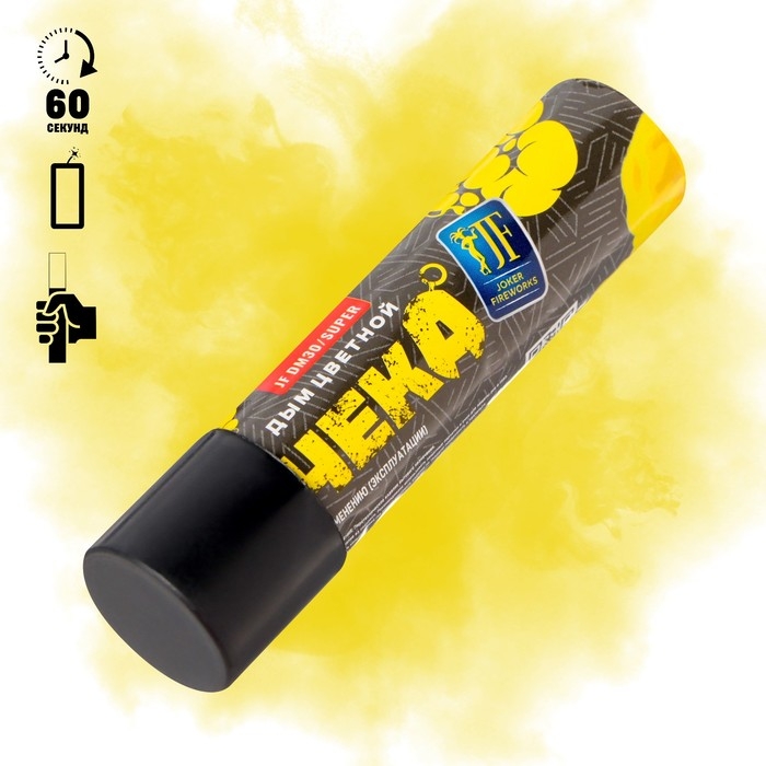 Цветной дым жёлтый, высокая интенсивность, 30 сек, с чекой