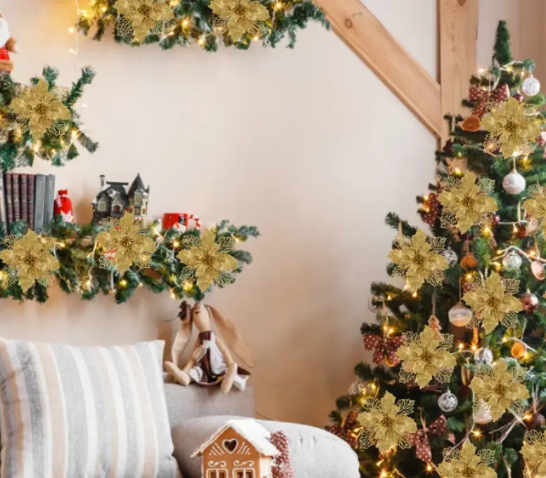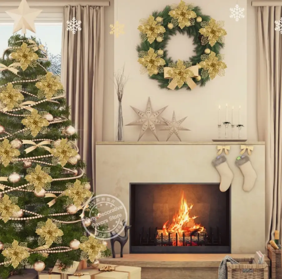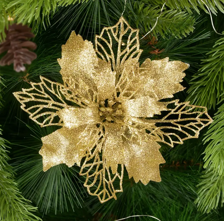 Цветок на елку новогодний Пуансеттия 3 штуки