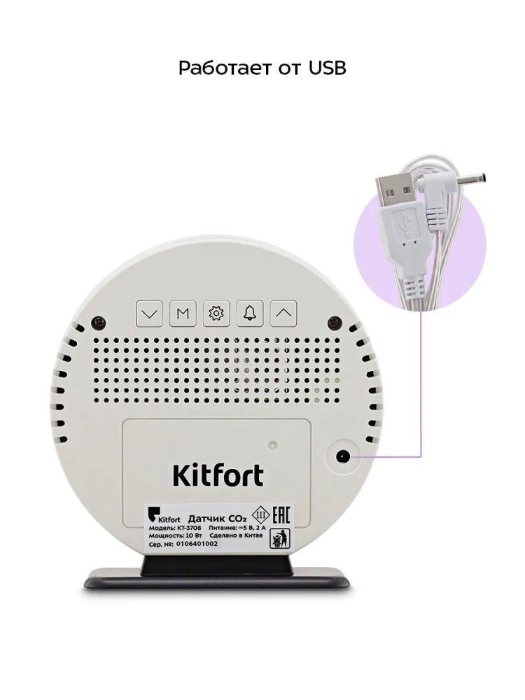 Датчик CO2 Kitfort КТ-3708 — это прибор, который измеряет концентрацию углекислого газа в помещении, а также показывает температуру и влажность воздуха в помещении. Температура может отображаться в градусах Цельсия или градусах Фаренгейта.