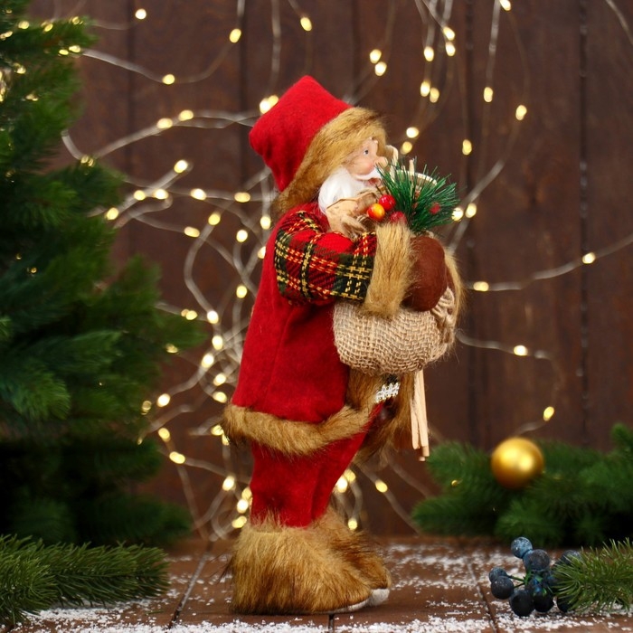 Дед Мороз "С мешком и лыжами" 30 см