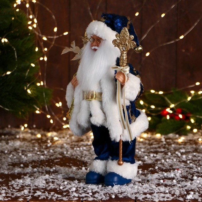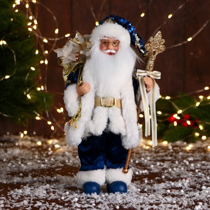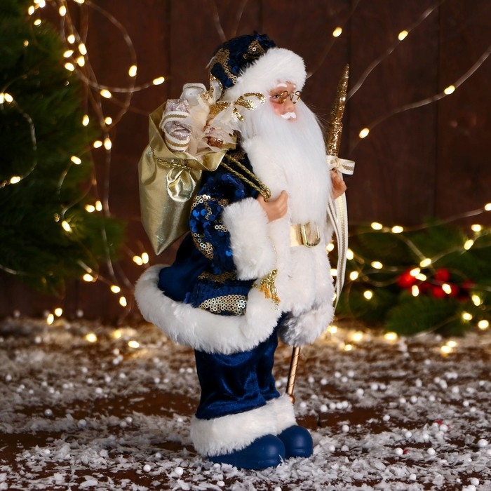 Дед Мороз "С охапкой подарков и бантом" 30 см, синий
