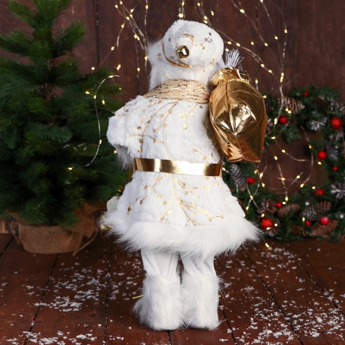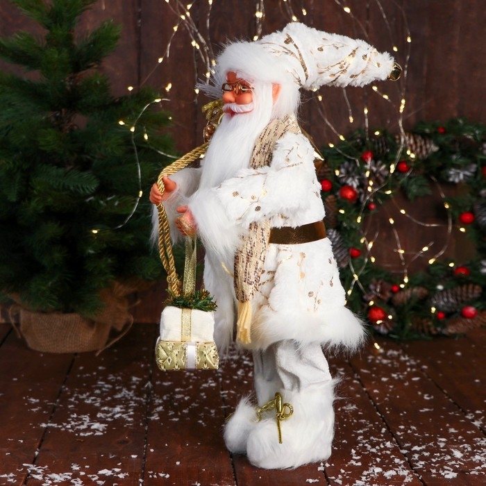 Дед Мороз "С подарками и в ремешке" 50 см, бело-золотой