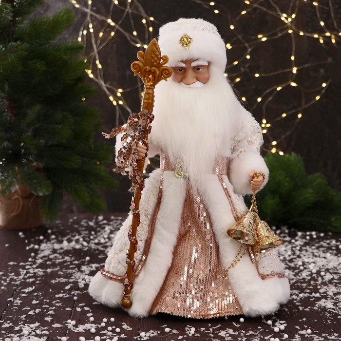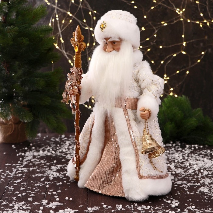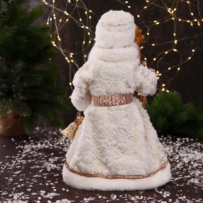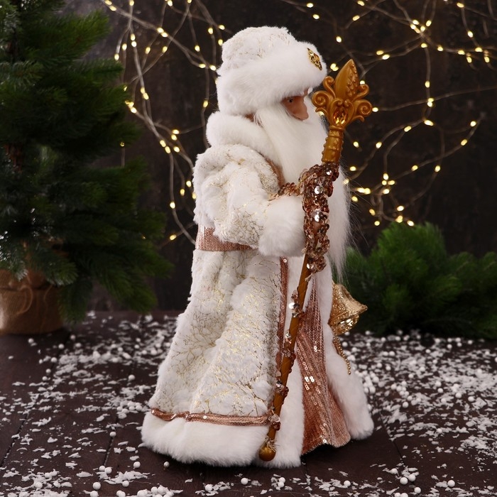 Дед Мороз "С шишками и посохом" двигается, 40 см, бело-бежевый