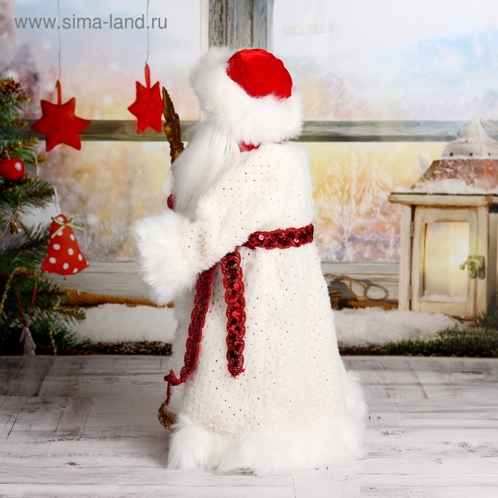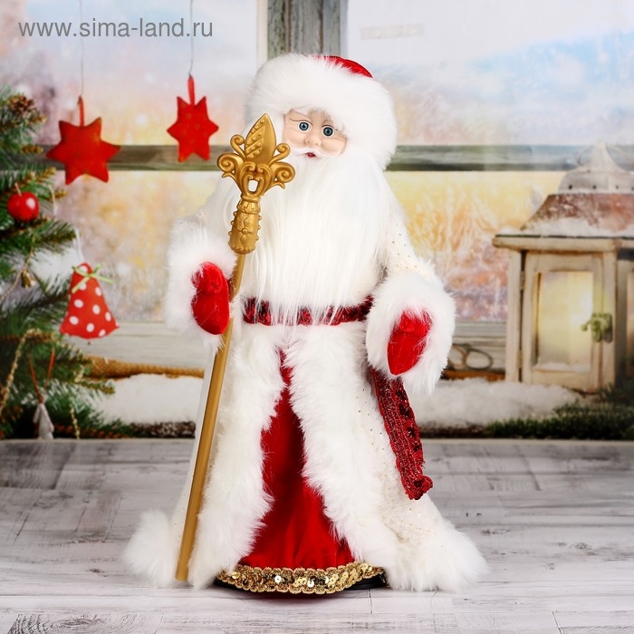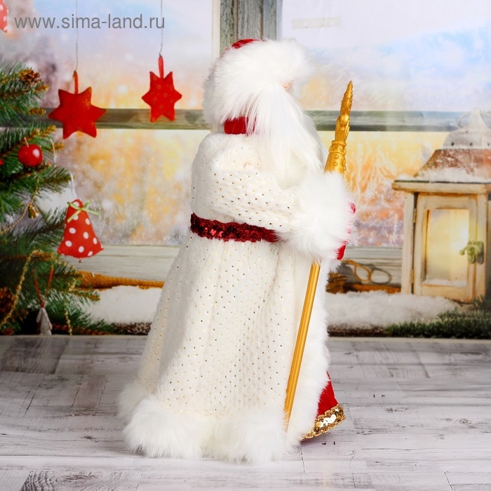 Дед Мороз "Шик" в красно-белой шубке с посохом, двигается, 47 см