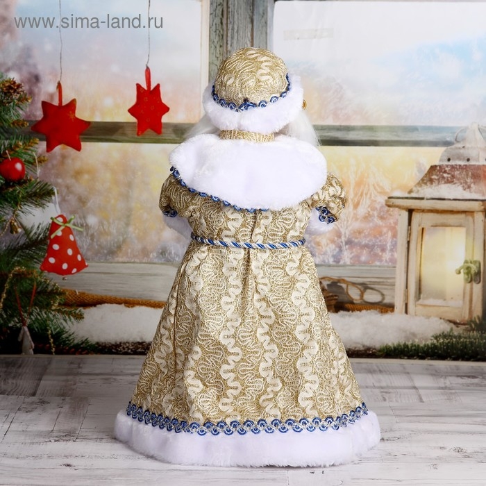 Дед Мороз "Шик" в сине-золотой шубке с посохом, двигается, 47 см