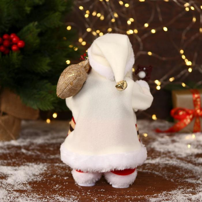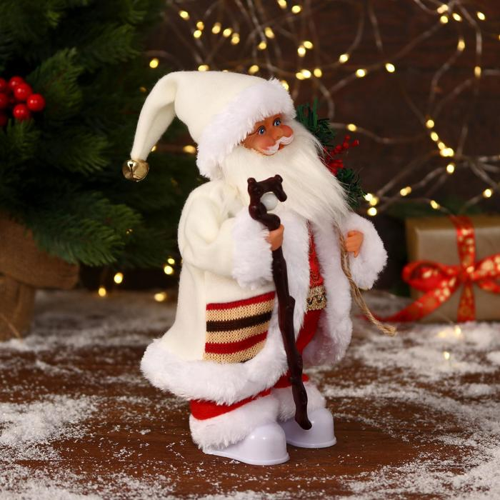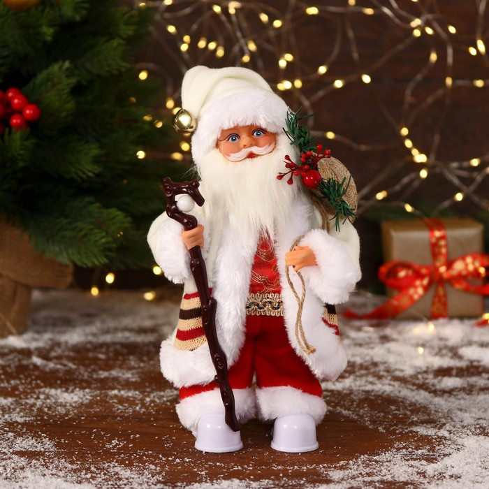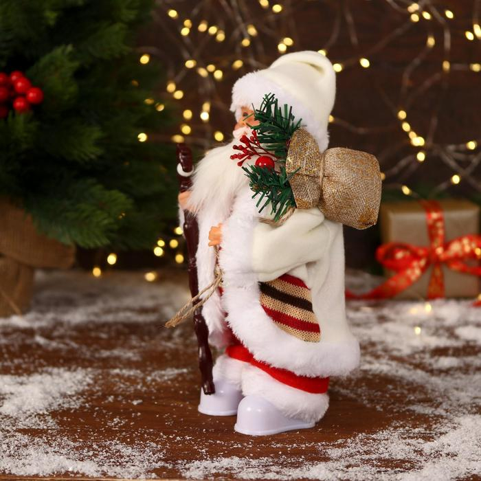 Дед Мороз "В белом костюмчике с орнаментом, с посохом" двигается, 11х30 см