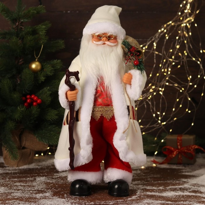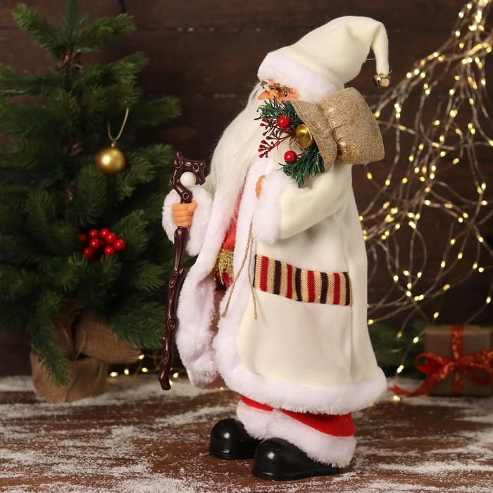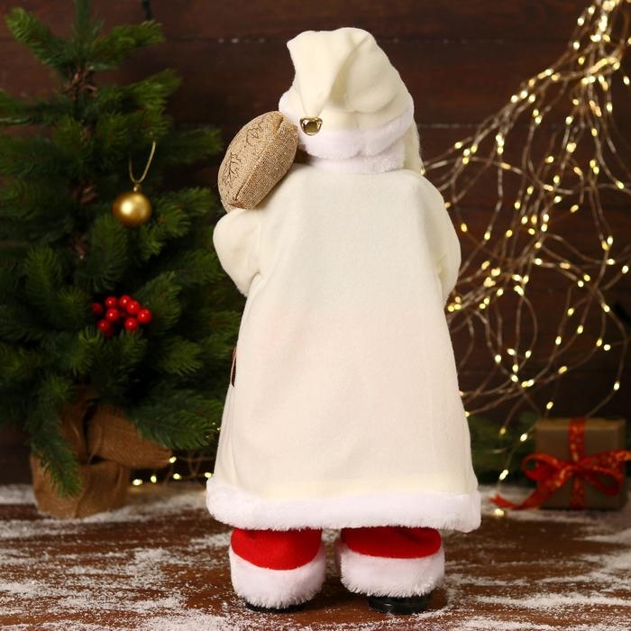 Дед Мороз "В белом костюмчике с орнаментом, с посохом" двигается, 20х50 см