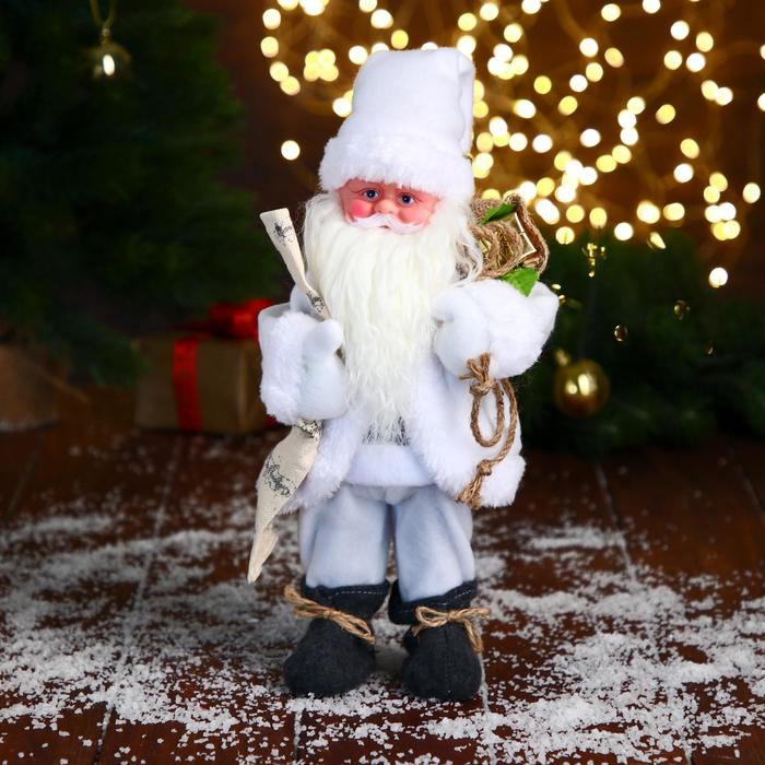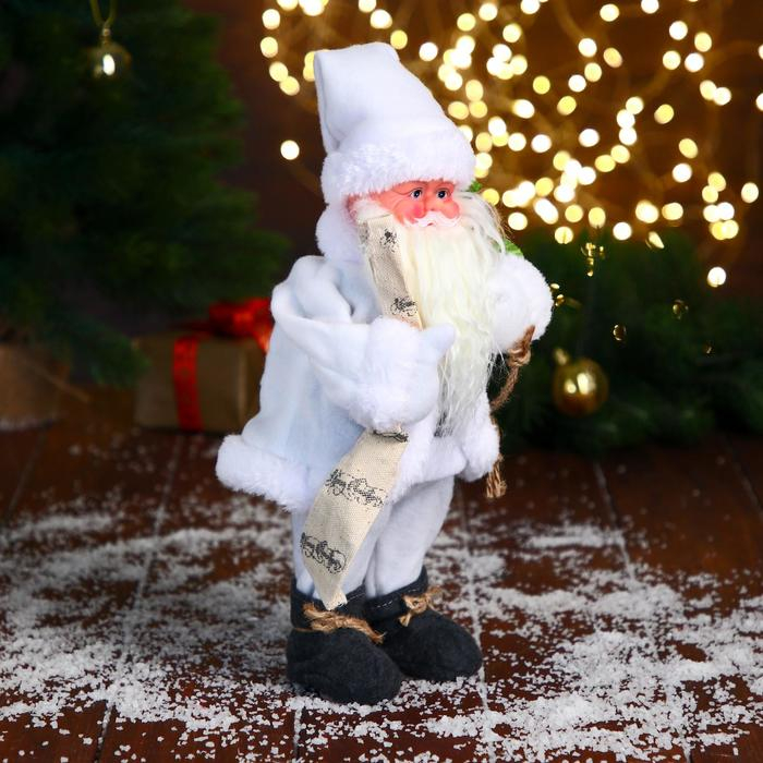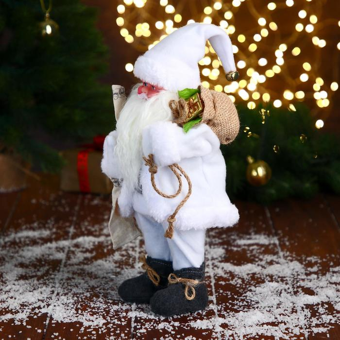 Дед Мороз "В белом полушубке с мешком" двигается, 29 см