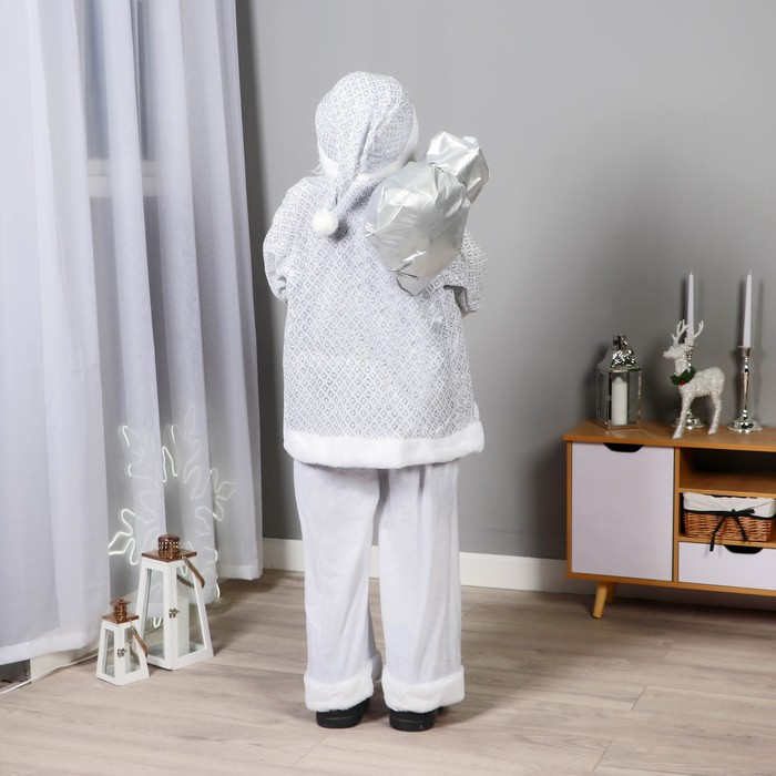 Дед Мороз "В белой шубе ромбик блеск, с фонариком и подарками" 45х150 см