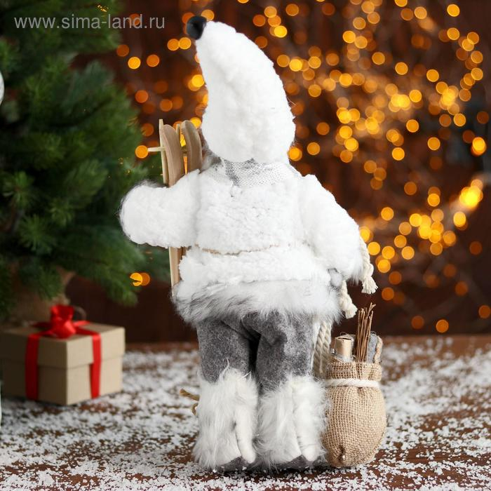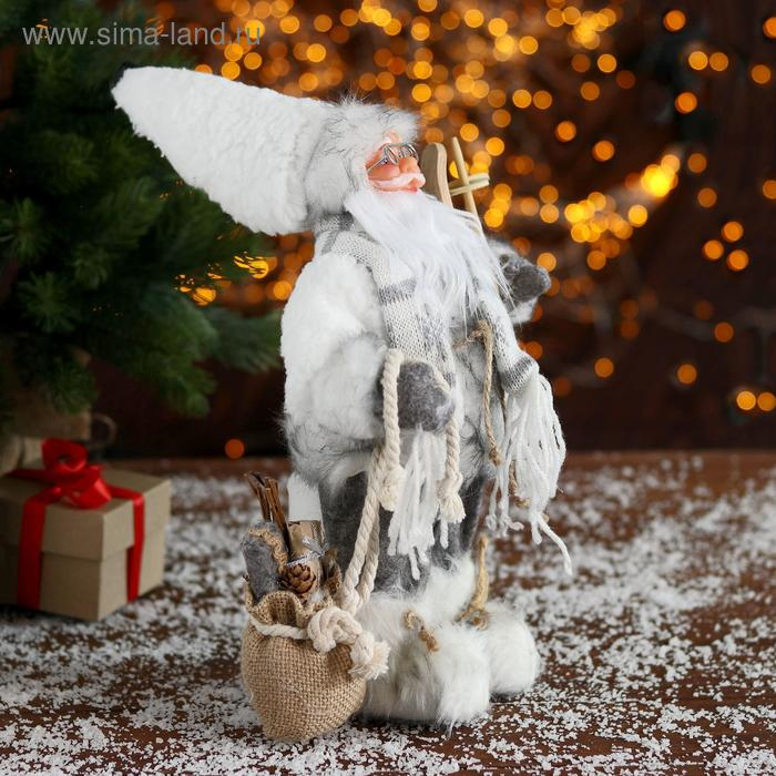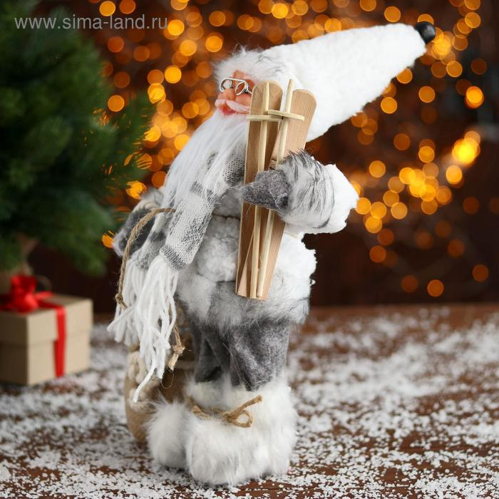 Дед Мороз "В белой шубке с лыжами" 30 см