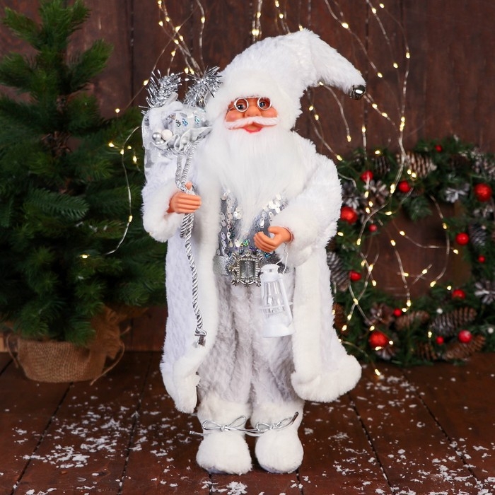 Дед Мороз "В блестящем жилете" 50 см, серебристо-белый